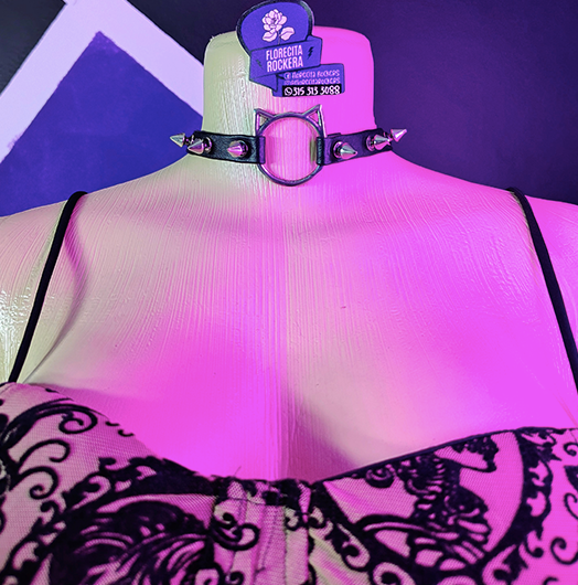 El Chocker de púas con argolla y orejas de gato combina la vibra agresiva del estilo punk con un toque juguetón y alternativo. Las púas metálicas aportan actitud y fuerza, mientras que las orejas de gato crean un contraste único que mezcla lo cute con lo dark. La argolla central añade un detalle icónico que completa el look con un aire rebelde y llamativo.